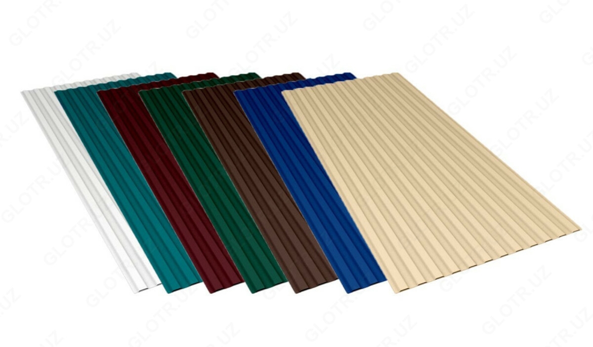 Профнастил с полимерным покрытием – листовой металлический прокат, поверхность которого покрывается специальным составом для дополнительной защиты и выполнения декоративной функции. В зависимости от сферы применения, профлист может покрывать однотонными составами по палитре RAL, либо текстурным способом под дерево, натуральный камень.