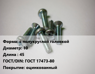 Винт с полукруглой головкой 10х45 ГОСТ 17473-80 оцинкованный, упаковка 5 кг, кг цена от 339.99 Р / кг, где купить, условия доставки в Гродно и Гродненской области