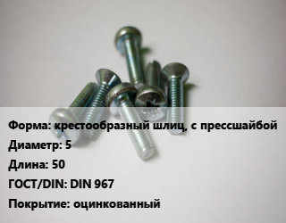 Винт крестообразный шлиц, с прессшайбой 5х50 DIN 967 оцинкованный, кг цена от 152.62 Р / кг, где купить, условия доставки в Гродно и Гродненской области
