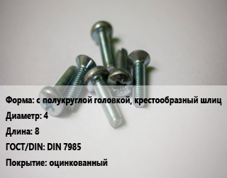 Винт с полукруглой головкой, крестообразный шлиц 4х8 DIN 7985 оцинкованный, кг цена от 243 Р / кг, где купить, условия доставки в Гродно и Гродненской области