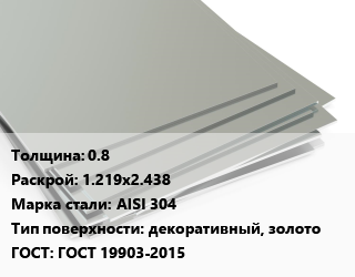 Лист нержавеющий 0.8 1.219х2.438 Сталь: AISI 304 Тип:декоративный, золото ГОСТ 19903-2015, шт, г/к цена от 17 204 Р / т, где купить, условия доставки в Гродно и Гродненской области